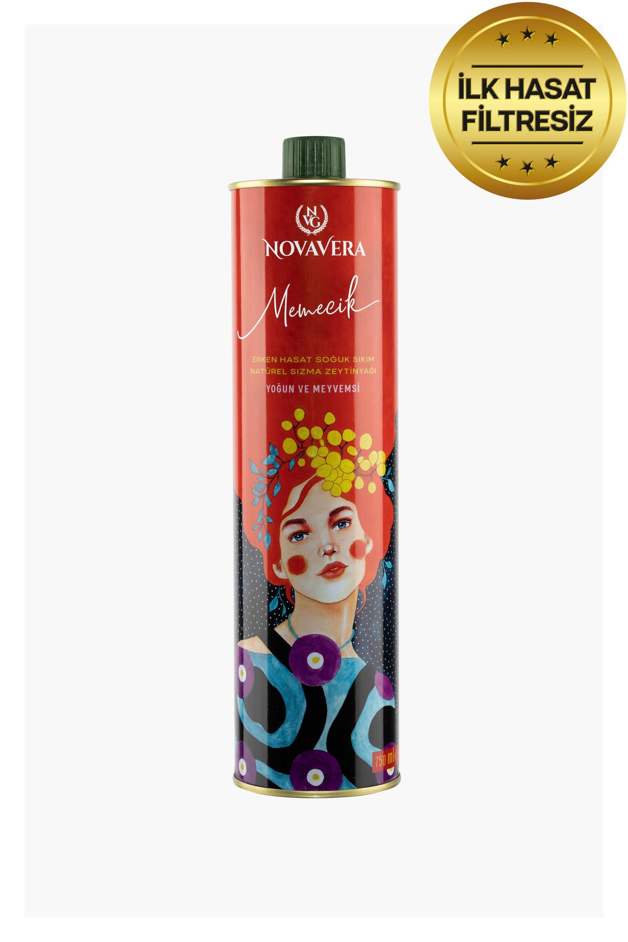 Nova Vera İlk Hasat Memecik, Aydın bölgesinin dağ köylerinde yetişen ve zedelenmeden dal sarsıcılar ile hasat edilen Memecik cinsi zeytinlerin soğutuculu kamyonlar ile Ayvalık'a taşınarak BRC ve ISO 22000 belgelerine sahip Nova Vera Ayvalık tesislerinde soğuk sıkım yapılması ile üretilir.